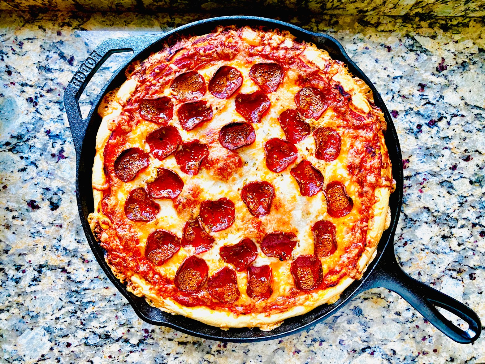 Es diu aixi perquè tradicionalment es cou dins d’una paella (“pan” en angles) de ferro colat. Es una de les grans pizzes dels Estats Units. Atenció: Necessites dos dies i temps per fer-la.